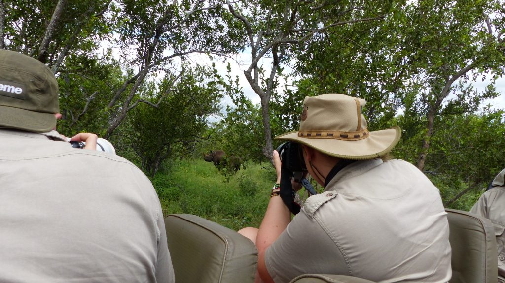 De eerste eigen game drives zitten er inmiddels ook op. Na in het eerste semester twee keer een uurtje te hebben mogen oefenen, was vorige week mijn eerste echte gamedrive. Dit houdt in: de avond van tevoren tijdens het eten gastvrouw spelen voor de medestudenten uit jouw groep, ’s ochtends een briefing geven met alle veiligheidsvoorschriften en wat mee te nemen, en vervolgens drie uur door het reservaat Greater Makalali te rijden en je medestudenten zoveel mogelijk bij te brengen over de plaatselijke plant- en diersoorten, met halverwege een pauze waarbij je je ‘gasten’ voorziet van koffie of thee met wat rusks, de Zuid Afrikaanse equivalent van beschuit. Ik had enkele wetenswaardigheden voorbereid en gelukkig waren de jakhals en het nijlpaard bereid om mee te werken en braaf op te komen draven voor mijn verhaal. Daarnaast had ik het geluk dat mijn groep als enige de hele week nog geen leeuwen had gezien en precies tijdens mijn drive werd een een koppeltje parende leeuwen gespot langs de waterkant. Dus het eerste uur van mijn drive werd volledig opgevuld door de koning (en koningin) van het dierenrijk. Er is nog veel werk aan de winkel voordat ik volledig zelfstandig mijn game drives kan verzorgen, maar ik geniet van elk moment achter het stuur.